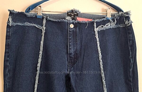 Джинси від британського бренду PrettyLittleThing. Застібаються на блискавку і болт. По спинці кишені. Декоровані бахромою. Тканина щільна, не тягнеться.(10645)