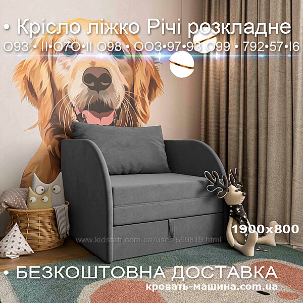 Крісло Річі, розкладний диван ліжко 1900х800 комплект, крісло диванчик велюрДитячі м´які ліжка, розкладні кутові дивани для дітей: кровать-машина.com.ua