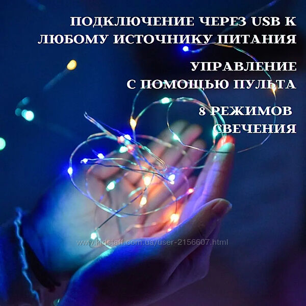 Подробное описание: Светодиодная разноцветная гирлянда 100 светодиодов,10 метров, пульт