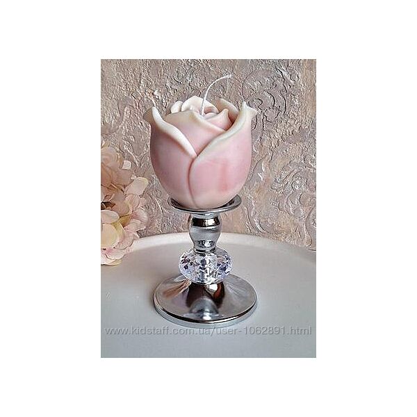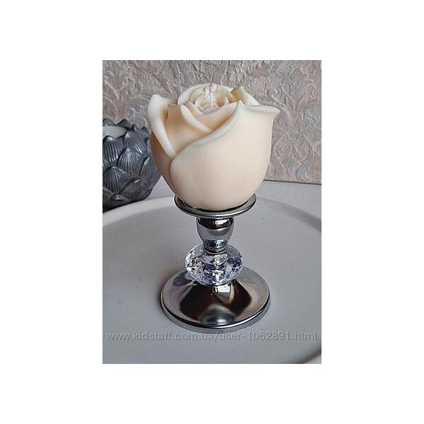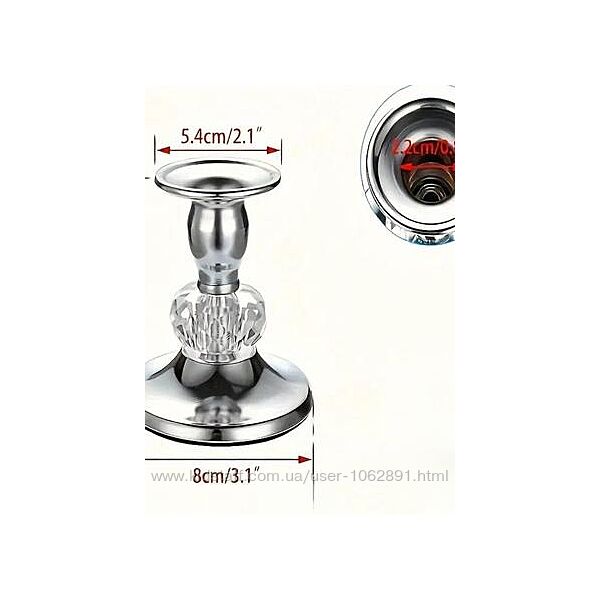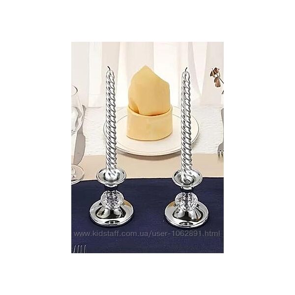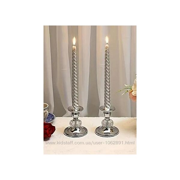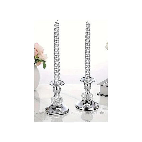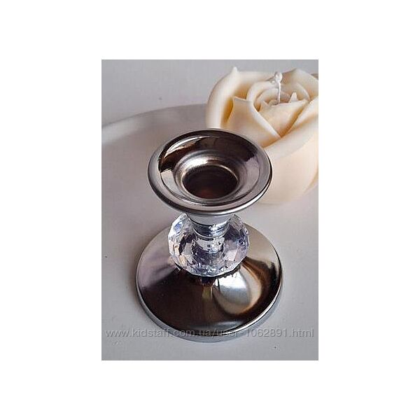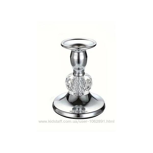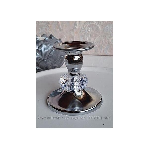 Подробное описание: Сріблястий металевий свічник з кришталевою вставкою