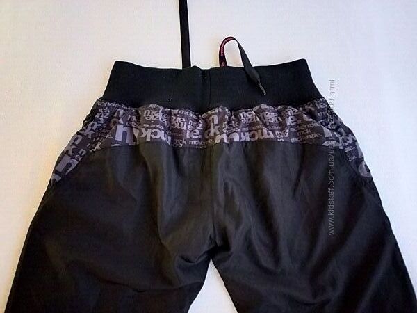 Штани спортивні McKenzie, плащівка, є підкладка. Вживані 1 раз акуратно, стан ідеальний, дивіться фото.Розмір вказаний 10. Довжина по боку 98 см, шаговий 78 см, ширина талії 37 см, тягнеться до 45 см, ширина стегон 56 см, ширина штанини зверху 28 см. Посадка спереду 24 см, ззаду 34 см.