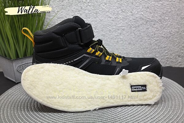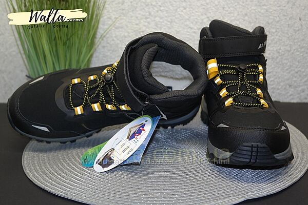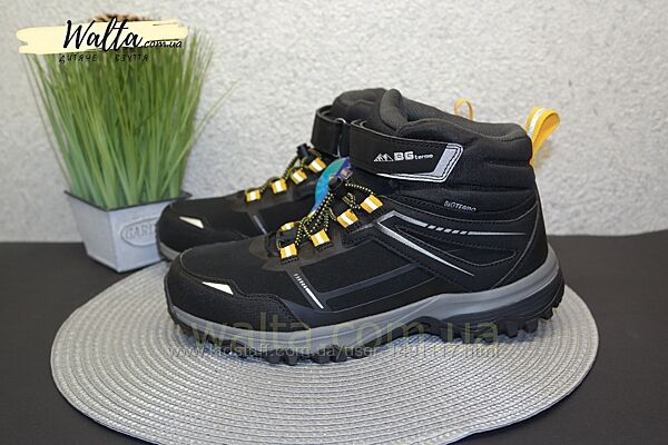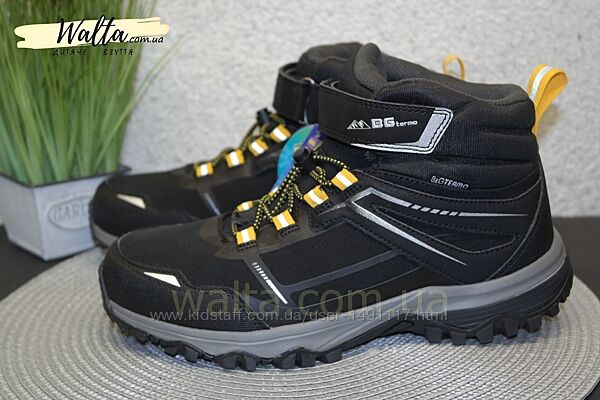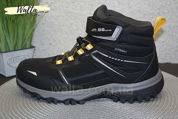 Класні, стильні, практичні, якісні термокросівки від фірми B&G. Колір основний чорний, вставки жовтого. На липучці+шнурівка-затяжка. Професійний захист від вологи та холоду. Ідуть на температуру від 5 до -30 градусів.