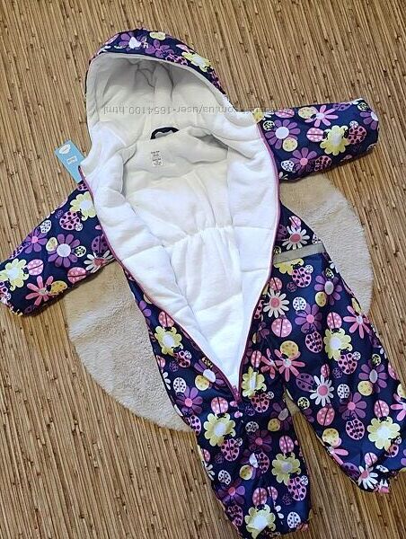 Теплий зимовий суцільний комбінезон на флісі для дівчинки р.92,98,104Тканина щільна водовідштовхуюча плащівка, утеплювач синтепон 300, підкладка фліс.В рукавах та в штанах резинка.Є світловідбиваючі елементи.