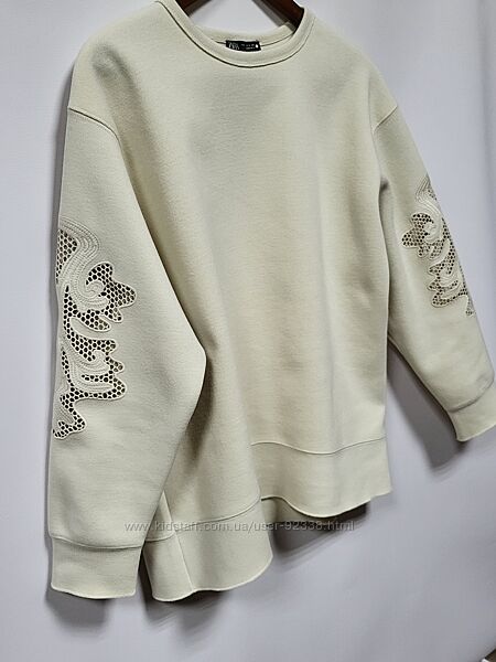 Кофта тепла жіноча Zara, оригінал, розмір M-L, маркування М, але на мій погляд на L більше підійде, дивіться заміри. Тканина щільна, рукав з вишитим прозорим візерунком. Склад тканини 100% поліестер.Заміри: плечі 50см, ширина 59-60см, рукав від шву 54.5см, довжина 66-68см. Стан дуже хороший, колір ніжний бежевий.