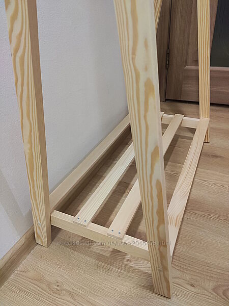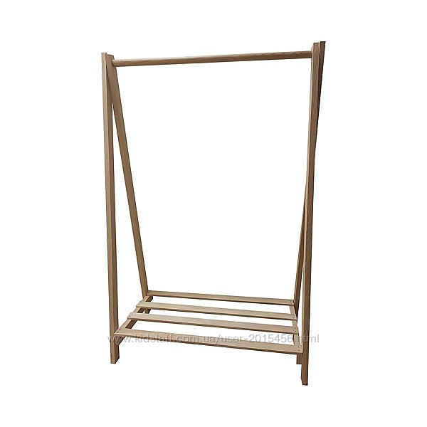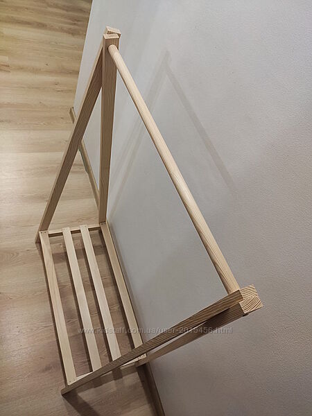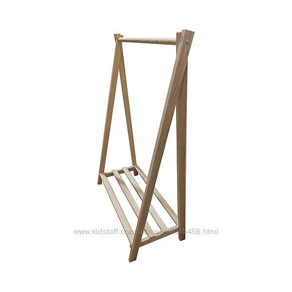 Ця дерев’яна підлогова вішалка для одягудопоможе зберегти порядок у дитячій кімнаті. Дозволяє зручно зберігати одяг,взуття, постіль чи іграшки.