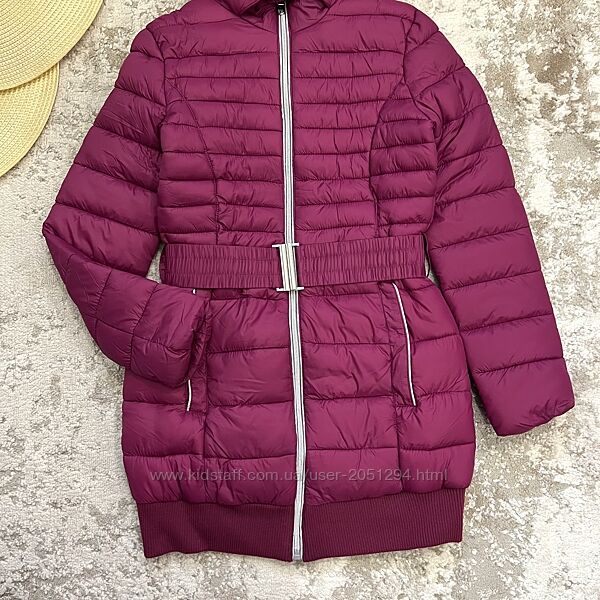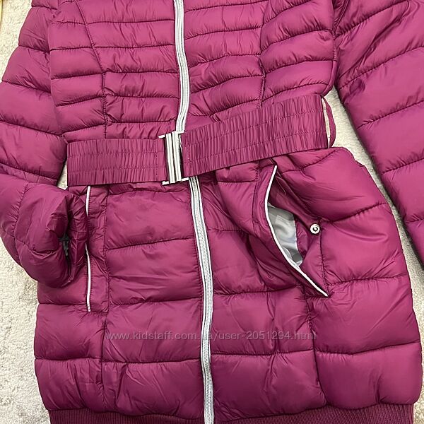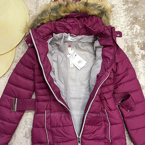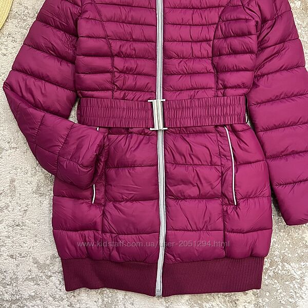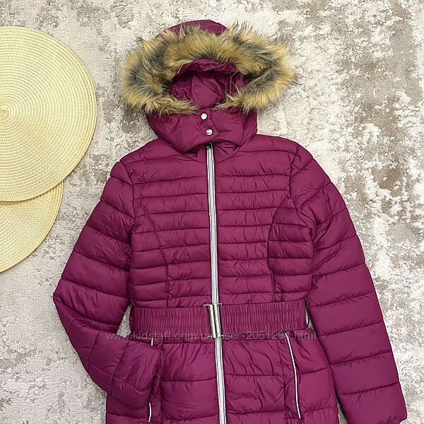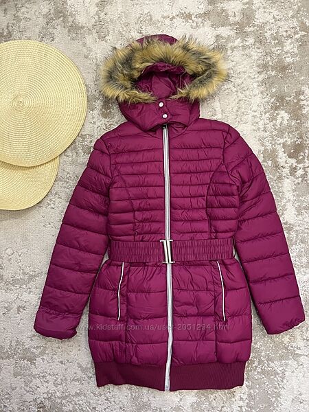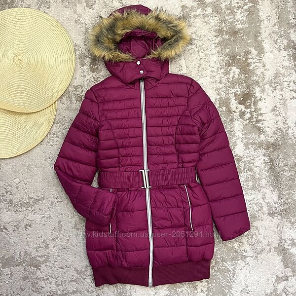 Тепла куртка єврозима підліткова під поясок, з капюшоном, на опушці м´яке хутро.Бренд: OVS