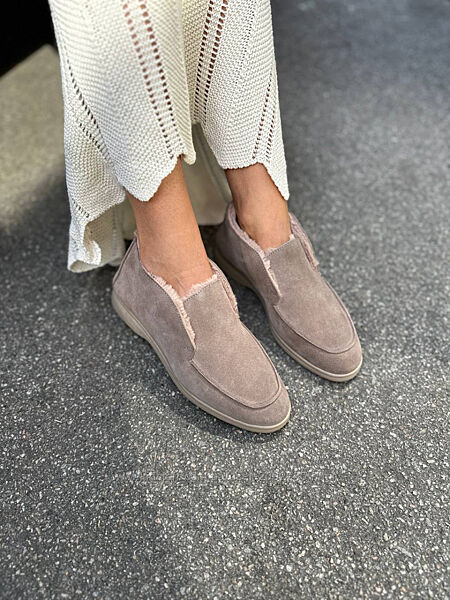 Лофери жіночі замшеві та шкіряні на хутрі зима Артикул 6310 новинка