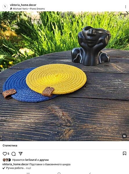 Натуральні подставки под чашку ручної роботи з бавовняного шнура та джуту. Стильні, практичні, додають красу вашому столу. Широка палітра бавовняного шнура. Можливо компанувати будь які кольори. Пошиття у будь-якому розмірі.Плейсмати доступні в різних розмірах.