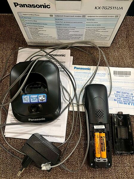 Радиотелефон Панасоник KX-TG 2511 UAT радіо/радио телефон, стационарный беспроводной телефон с АОН /куплений на розетка юа/База, трубка, адаптер, телефонний кабель, батарейки Панасонік- 2шт, упаковка