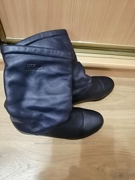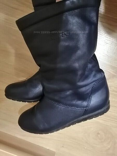 Утеплені чоботи ECCO модель Runners, зроблені у Таіланді. Мої, стан ідеальний, майже як нові. На фото плями від освітлення.Розмір 39, маломірні, устілку не витягнути ,вони на 38. Середньої повноти. Внутрі теж ідеальні, абсолютно чисті, не затерті, перед продажем обробила антибактеріцидним спреєм для взуття. Темні чорно-сині. Утеплення схоже на фліс або штучну вовну. Можна на високе піднесення ноги, вгорі не вузькі, легко взути.