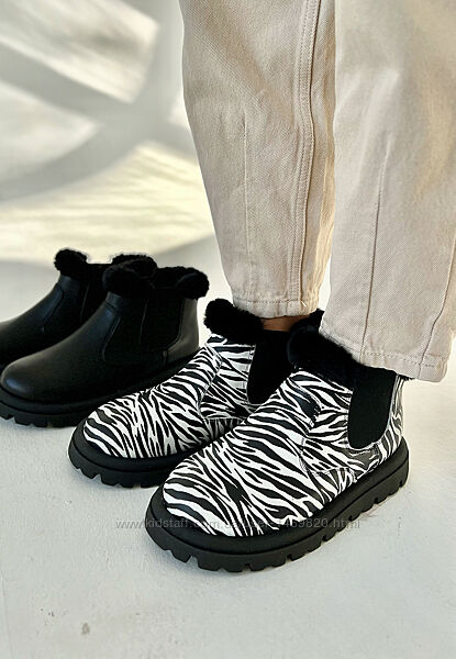 Подробное описание: Ботинки челси зима черно-белые принт зебра кожа натуральная v7-ug-02