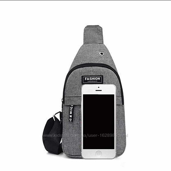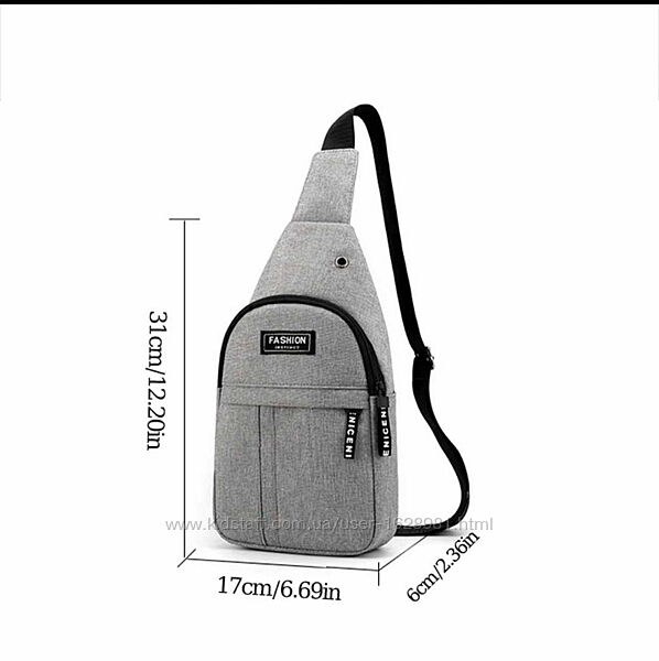 Актуальная удобная мужская сумка застегивается на молнии есть отверстие для шнура от наушников длина лямки регулируется материал: оксфорд влагостойкая габариты 31х17х6 см вес 152 г цвет: серый меланж, синий "джинс", черный