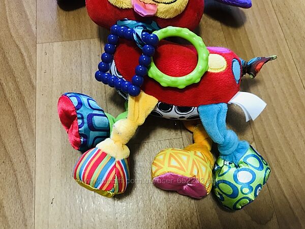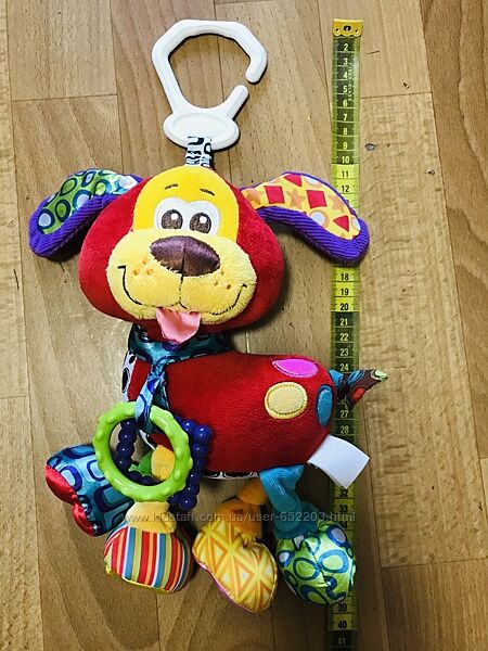 Игрушка оснащена удобным карабинчиком, позволяющим крепить ее к прогулочной коляске или же детскому автокреслу.