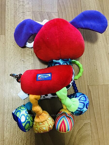 Кроме того, игрушка поражает разнообразием красок, которые совершенствуют зрение ребенка. Также щенок оснащен грызунками, помогающими прорезаться молочным зубкам. Хвостик щенка растягивается и с вибрированием стягивается обратно.