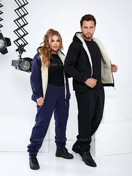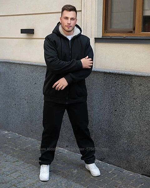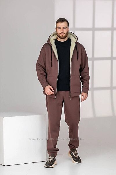 На хутрі зігріє у холодну погоду. Куртка на флісі з овчиною: Вільного крою. Застібається на застібку "блискавка". Кишеня "кенгуру" Штани тринитка на флісі: Вільного крою. З широким поясом-гумкою та шнурком. Мають дві бічні кишені. Теплий спортивний костюм на хутрі з якісних матеріалів.