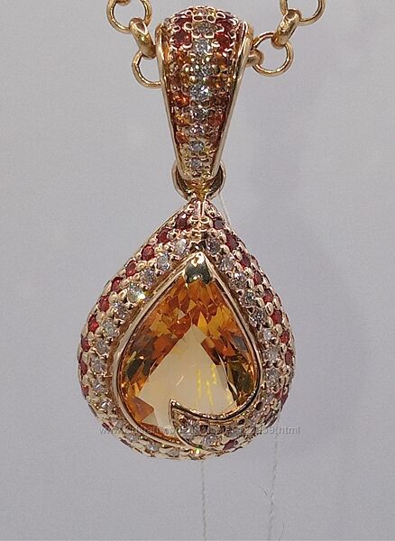 Подробное описание: Кулон Цитрин Бриллианты Сапфир Падпараджа Жёлтое золото 585 7,8гр