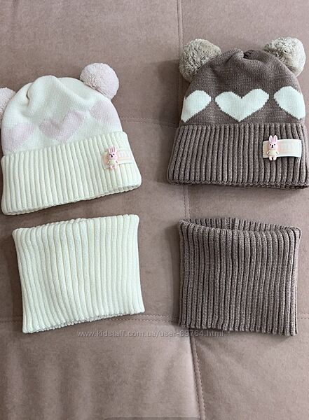 Зимний теплый комплект на флисе, шапка и хомут для маленьких красавиц