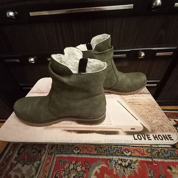 Очень шикарные Rieker, покупала за 4500 грн.Одела только раз и то в помещении.Состояние новых на фото видно по подошве и внутри.К сожалению на меня оказались впритык.Размер 39, на стельку 24.5 - 25.