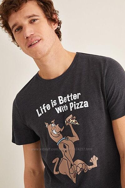 Пижама или костюм для дома men´secret - women secretМужской комплект из хлопковой пижамы: футболка с короткими рукавами с принтом Скуби-Ду и надписью «Жизнь лучше с пиццей», с простыми длинными штанами . В подарочном мешочке