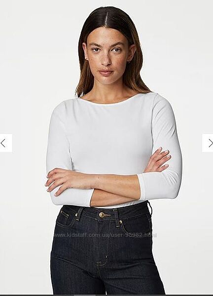 Базова бавовняна футболка з рукавами 3/4 від англійського бренда Marks & Spencer. Тканина середньої щільності, м´яка та приємна на дотик,тягнеться.