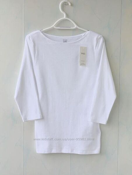 Белая базовая футболка marks & spencer 3/ 4 , хлопок