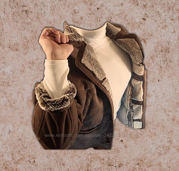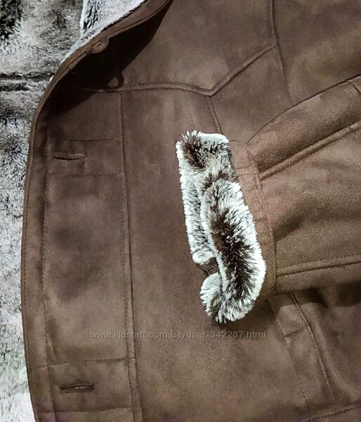 Размер евро 52 - 54.На рост 173 - 180см.Новая(бирка стик. доп. пуговица). Качественный искусственный материал. Визуально и тактильно. Абсолютно не отличим от натурального материала. Внутри тёплый искусственный мех по всему изделию. Шоколадного цвета. Верх четыре кармана. Внутри карманов нет .Фирменные пуговицы. Лёгкая , комфортная и очень тёплая. Добротный пошив. Европейский производитель.ДЛИНА ПО СПИНЕ ОТ ВОРОТА - 85см