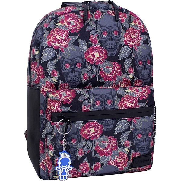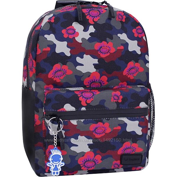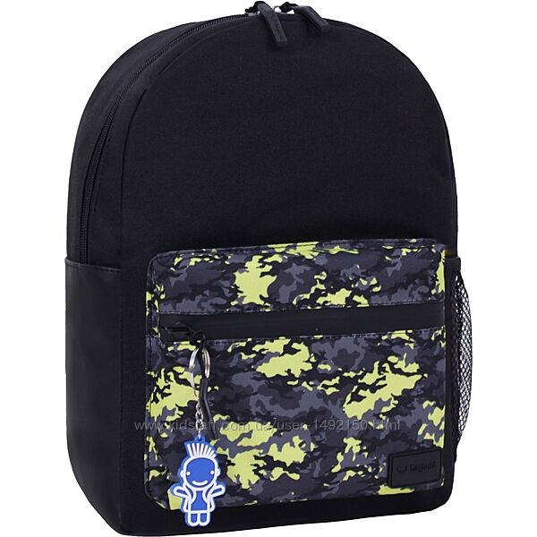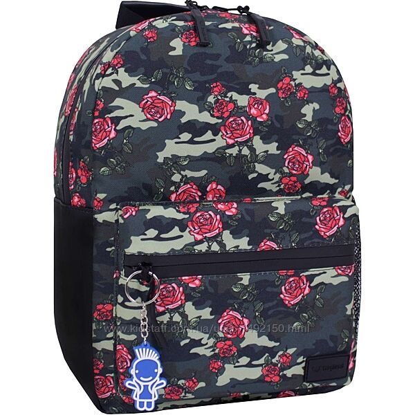 Спереду невеликий відсік для дрібних канцтоварів або аксесуарів, а збоку — кишені-сітки для пляшок із водою.