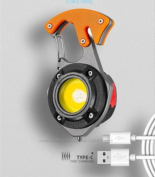 Подробное описание: Аккумуляторный Led фонарик W5143 с Type-c 7 режимов, красный свет, карабин