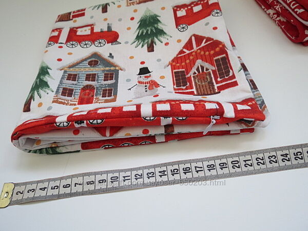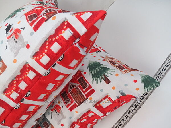 Новогодние наволочки 45х45 снеговик елка домики паровозикиНаволочки выполнены из польского хлопка- бязь, застегиваются на потайную молнию