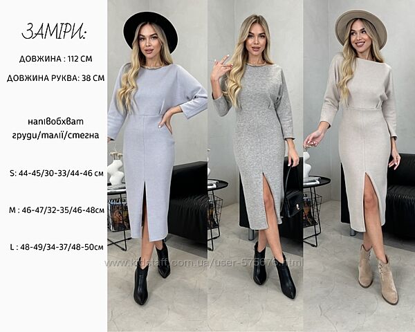 Тепла сукня-олівець, міді довжини із розрізом та проймою "кажан", збоку прихована блискавка. Модель із завищеною талією яка вигідно підкреслює фігуру та стане улюбленою у твоєму гардеробі .