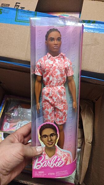 З ляльками Ken Fashionistas можливості розповідати безмежні! Вони зберігають прохолоду завдяки модним образам, створеним відповідно до їх індивідуального стилю.Ця лялька Кена одягнена в біло-кораловий комбінезон із гавайським принтом, який справді підкреслює його особистість!