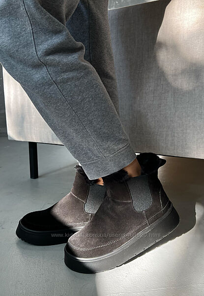 Подробное описание: Ботинки челси зима без застежек замшевые черные v7-ug-04