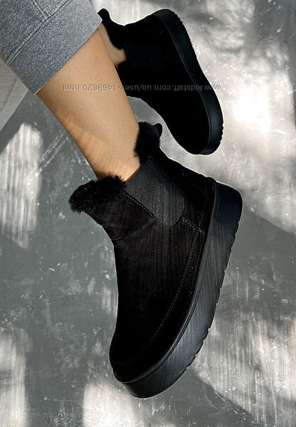 Ботинки челси без застежки замшевые зимние женские на меху черные.