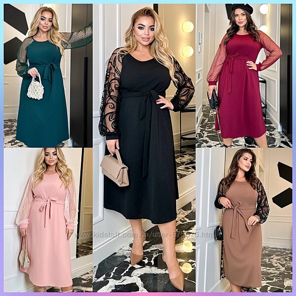 Подробное описание: р.48 до 62р. Сукня вільного фасону креп дайвінг, рукава сітка