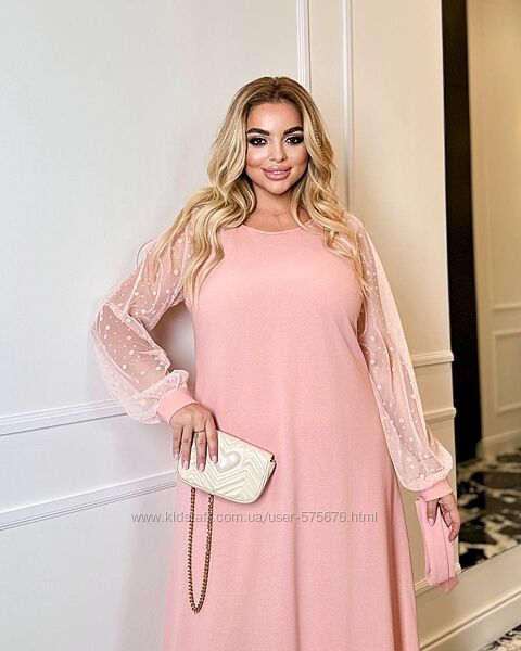 р.48 до 62р. Сукня вільного фасону креп дайвінг, рукава сітка