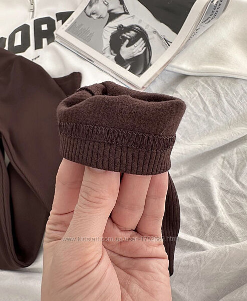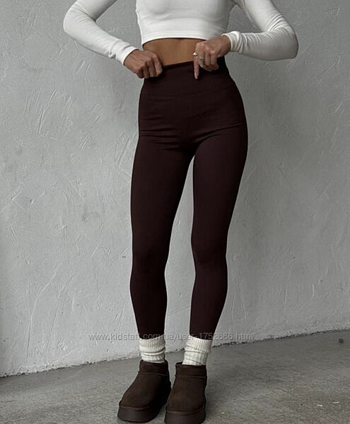 Подробное описание: Легінси на флісі шоколадного кольору в рубчик, висока посадка