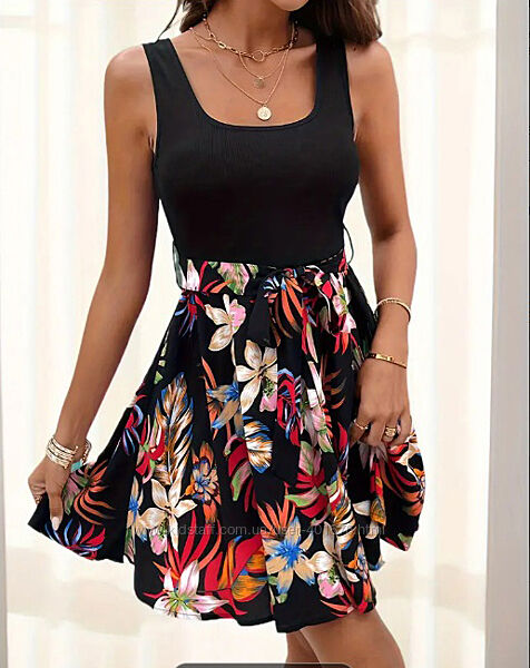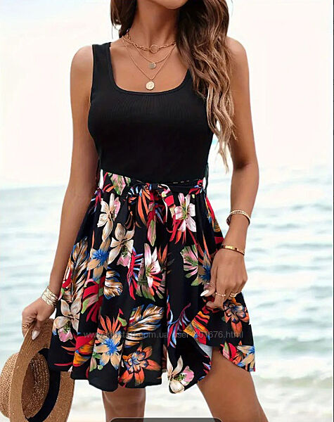8596Женский сарафан мини, легкая ткань юбки вискоза, расклешенная, лиф трикотажная ткань в рубчик, завышенная талия, резинка по талии, тянется, идет пояс.