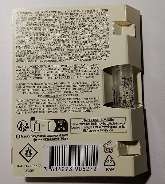 Об´єм парфуму: 1,2 мл Концентрація: парфум Виробник: Giorgio Armani