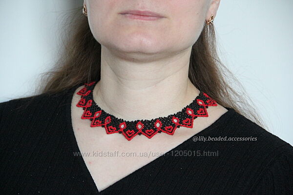 Силянка ′Сердечка′ в червоно-чорній кольоровій гамі.Розмір готової роботи: