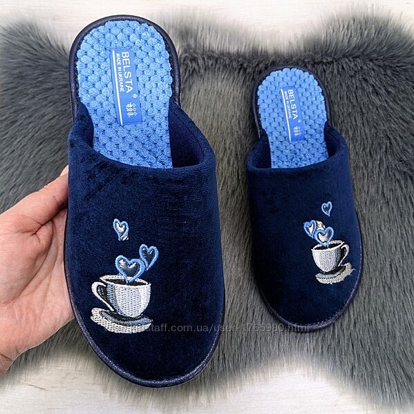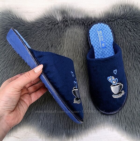 Подробное описание: Тапочки женские Белста темно-синие с закрытым носком велюровые 2871