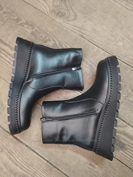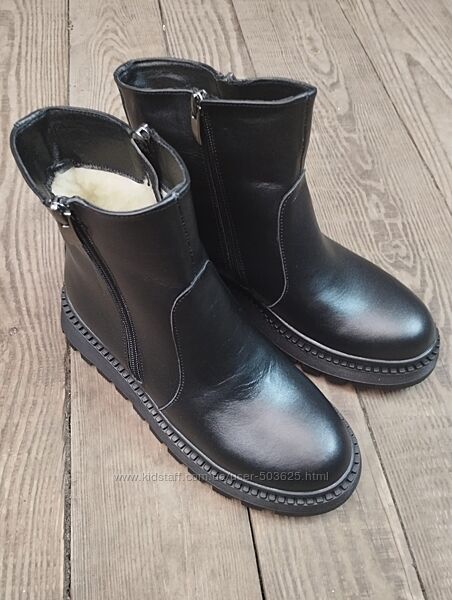 Подробное описание: Зимові жіночі чорні шкіряні черевики на платформі, танкетці, 36-41рр