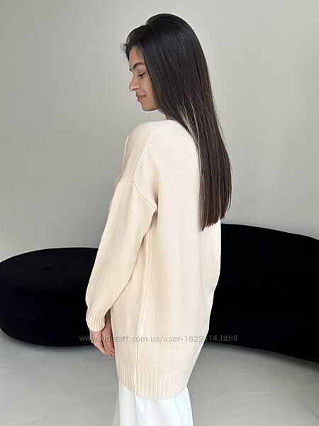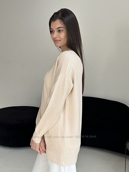 Зрiст моделі на фото 167 см. ОГ моделi 86 см. Светр пiдiйде на ОГ приблизно до 105 см (буде бiльш по тiлу, не так вiльно як на моделi)