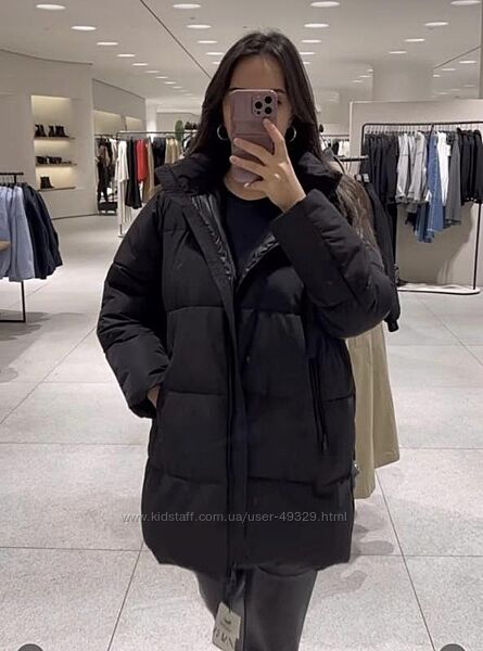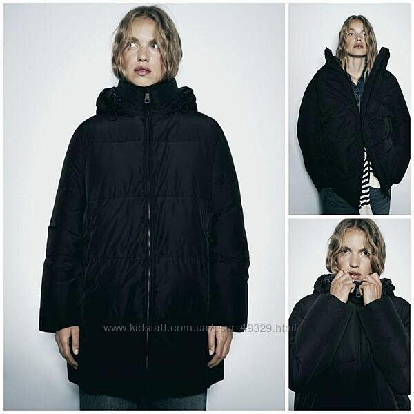 Пуховий анорак, зимова куртка від Zara. Із термоізоляційним шаром для отримання тепла навіть за -19 °C, наповнювачем з капоку (пух зтропічного дерева 50%), качиного пера (25%) та сірого качиного пуху