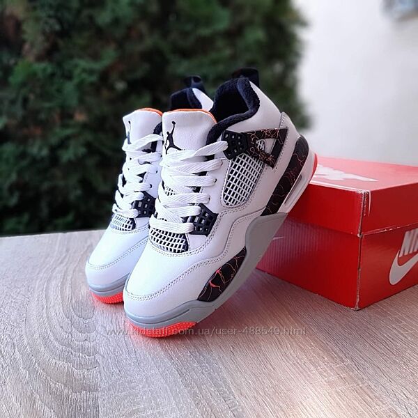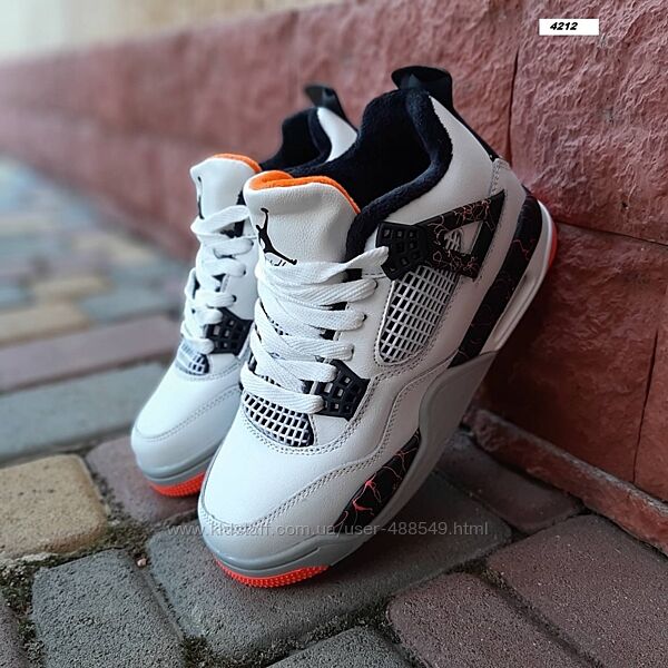 Подробное описание: Зимові кросівки високі з хутром Nike air jordan 4 retro білі з чорним та че