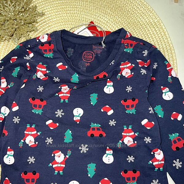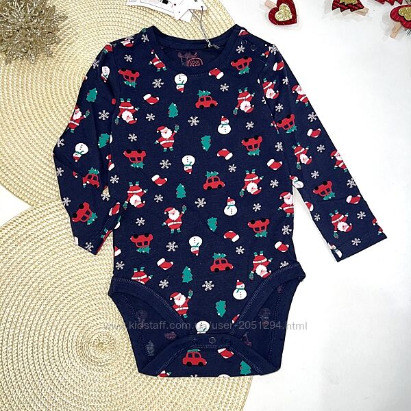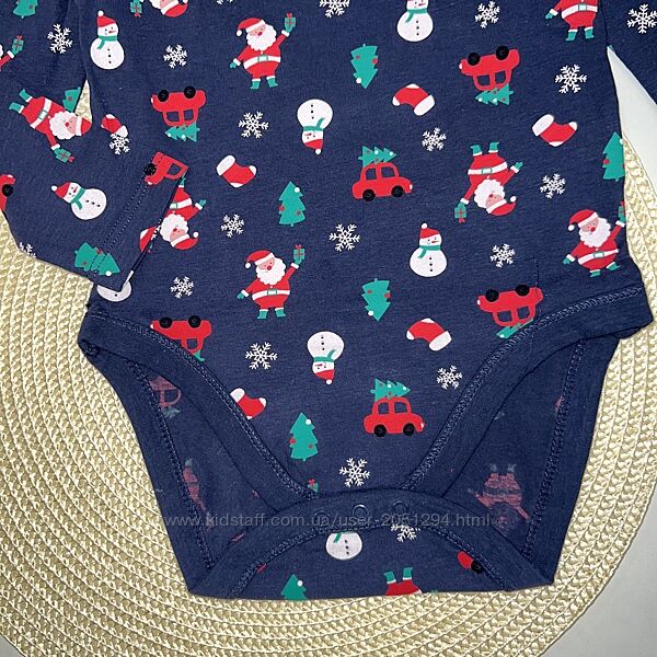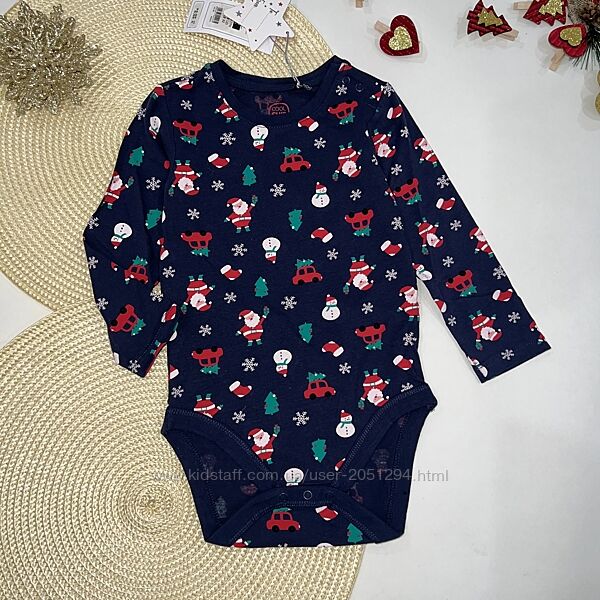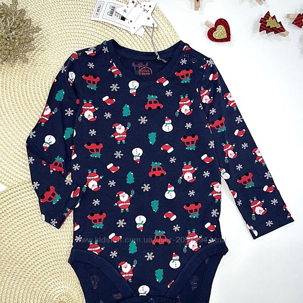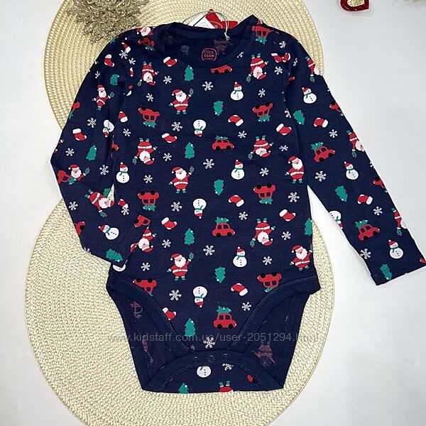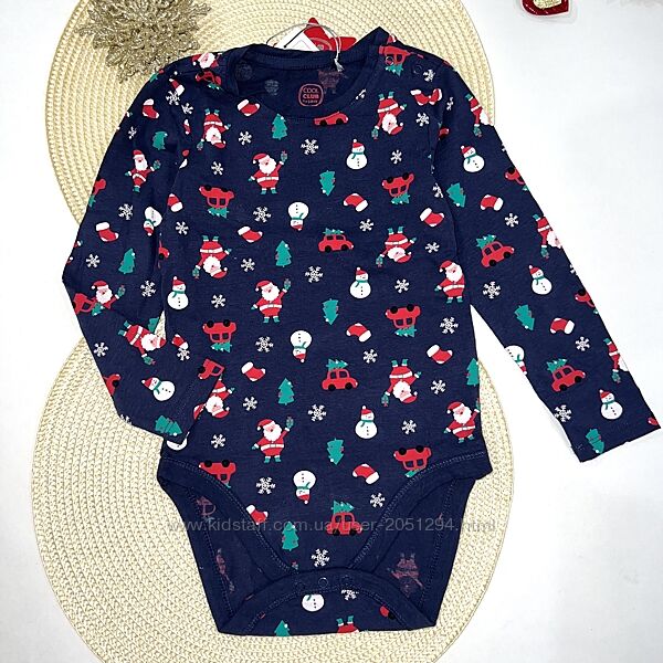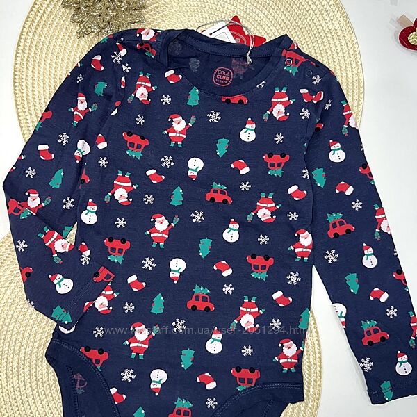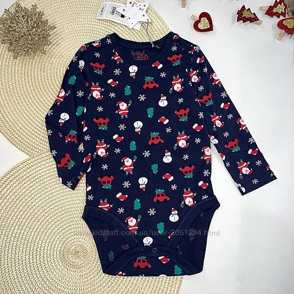 Подробное описание: Боді на довгий рукав темно синього кольору в новорічний принт. Розмір 6