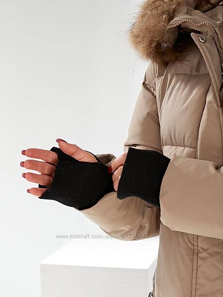 Тканина: водонепроникна плащівка, наповнювач - холлофайбер 250. Пальто з капюшоном , хутро натуральне - єнот , кріпиться на ґудзики. Рукав подовжений, має розрізи під палець. Знизу по обидва боки кнопки в тон, які можна розстібати. Застібається на блискавку та кнопки, має чотири кишені (фабричний Китай).