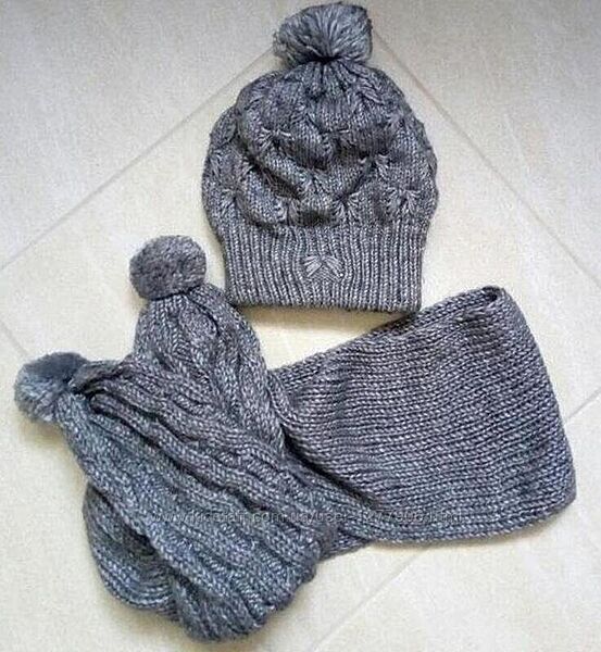 Зимний теплый женский вязаный комплект шапка и шарф