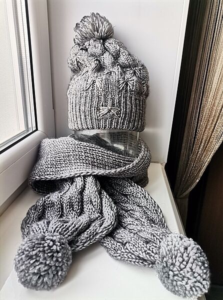 Вязаная шапка и шарф для девушек из красивой меланжевой пряжи высокого качества, состоящей из шерстяных, мохеровых и акриловых волокон. Модель объемная крупной вязкой. Шапка носилась очень мало, состояние -идеальное. Шарф не носился -новый. Длина шарфа от бубона к бубону -196 см Ширина -18 см Состав:60% акрил-30% шерсть- 10% эластан Доставка: Отправка Новой Почтой Предоплата 100% Без торга, обмена, возврата.