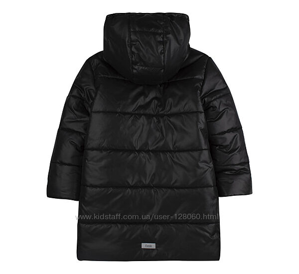 Куртка зимова подовжена, прямого силуету, з капюшоном зі стійкою. Колір чорний . Застібка центральна на «блискавку» та кнопки. Вшивниі кишені, додаткова на грудях. Рукава вшивні з внутрішніми манжетами.