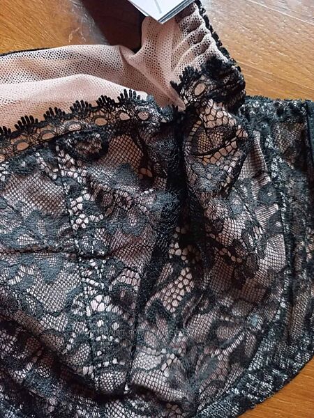 Элегантный бюстгальтер с мягкими чашками на косточках. Чашки выполнены из бежевой сеточки и черного кружева, внутри на сетчатой подкладке. Несъемные бретели с регулятором длины. Удобная модель для ежедневного использования.Размер: 90F